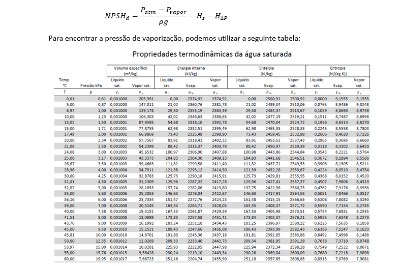 b) Se o NPSH requerido é de 4 m, essa bomba estará operando em uma condição de cavitação? Utilize um fator de segurança de 10% em relação ao NPSH requerido. Considere a pressão atmosférica do local = 101,3 kPa e a densidade da água=1000 kg/m³.