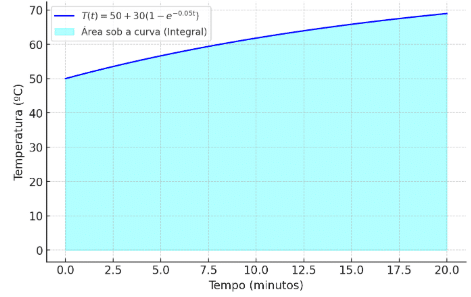 c) Calcule a taxa de variação da temperatura T′(t) nos instantes t = 0, t = 10 e t = 40 minutos. Considerando que a temperatura pode ser considerada estabilizada quando a taxa de variação for menor que 0,05 ºC/min, estime o tempo aproximado necessário para que o equipamento atinja essa condição de estabilização térmica. Justifique seu raciocínio.